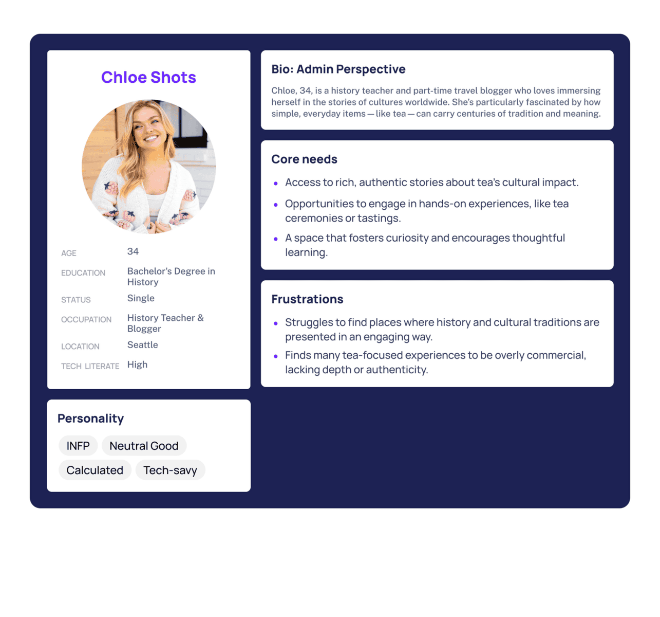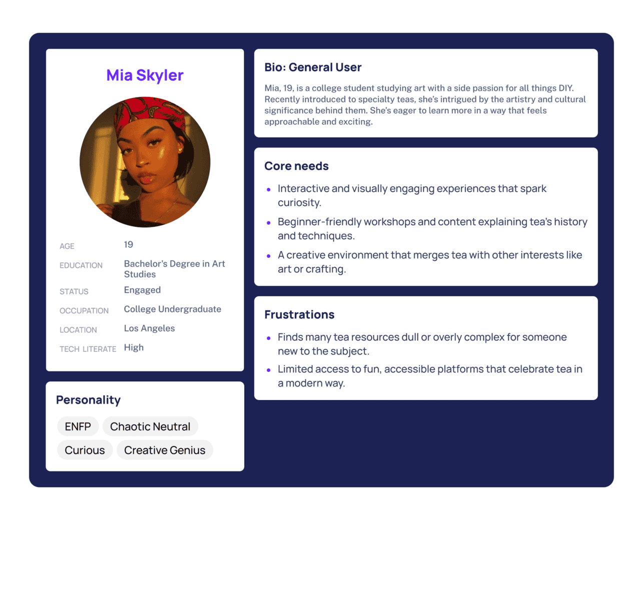To understand user needs, I began by identifying gaps in existing tea-related digital experiences. Despite extensive research, I found only three tea museums globally—all located in Asia—with outdated websites and limited interactivity. I analyzed these sites for usability flaws and aesthetic limitations, then surveyed tea enthusiasts and casual drinkers to learn what they’d want from an online museum experience.